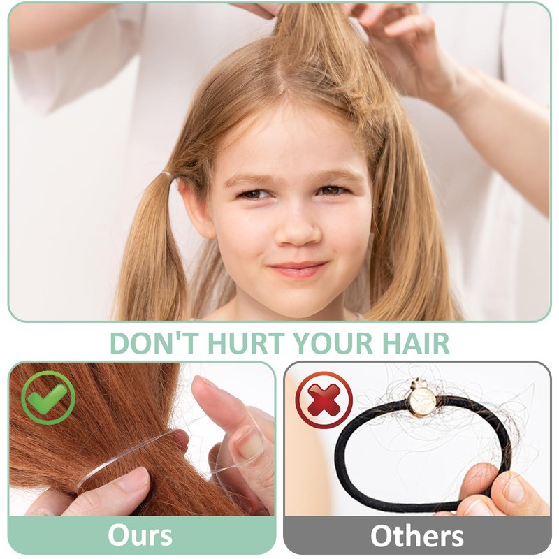 - 【Transparent and Concealable Design】: Mini hair bands are designed with transparent color, which can be well hide in your hair, and blend well with different shades of hair colors, easily creating a uniform color and ideal fashional hairstyle, and the hair rubber bands are not easy to knot and hook hair, which can be easily applied by anyone without pulling hair.