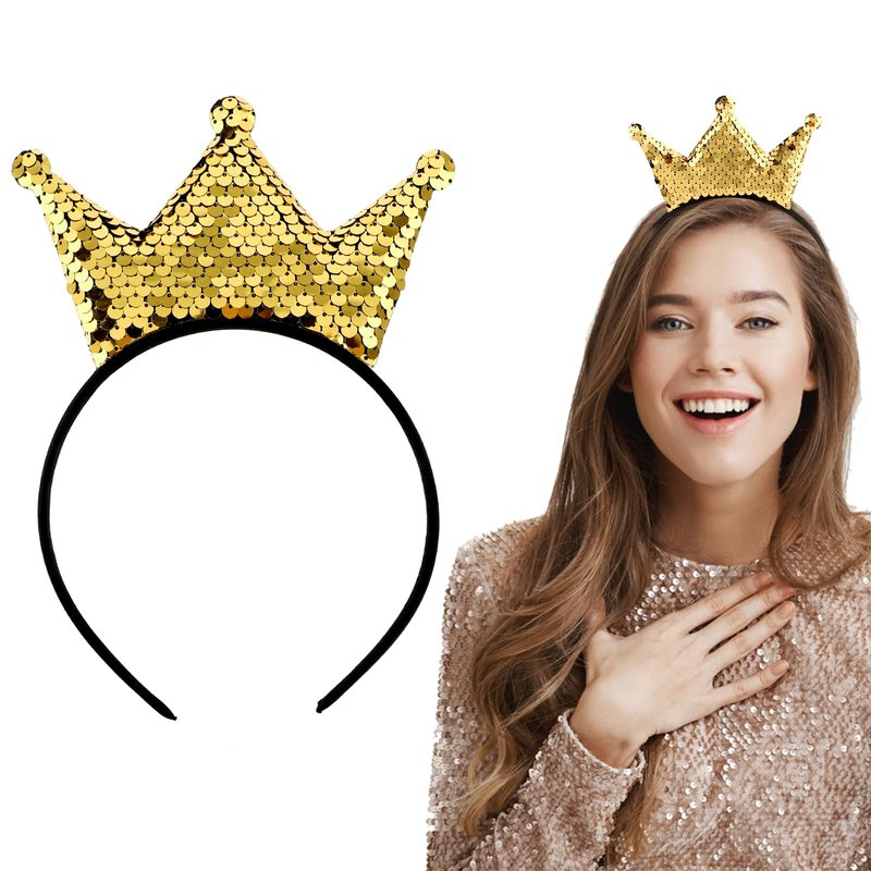 - 【Ideal Size】: The size of the gold crown headband is set at 8.27 × 5.51 × 0.39 inches / 21 × 14 × 1 cm, comfortable and safe to fit most people and head shapes. The sequin headband is very suitable for women, men, students, etc.