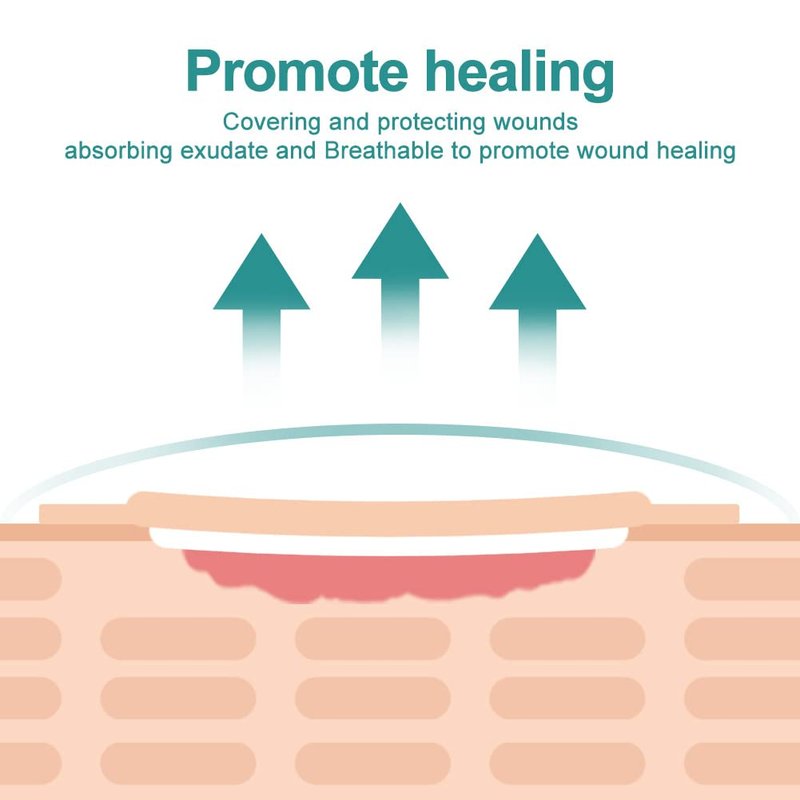 - BARRIER AGAINST WOUND POLLUTION- Semi-permeable PU film layer is waterproof and breathable, which provides a liquid barrier while allowing the passage of oxygen and water vapor, prevents wound contamination