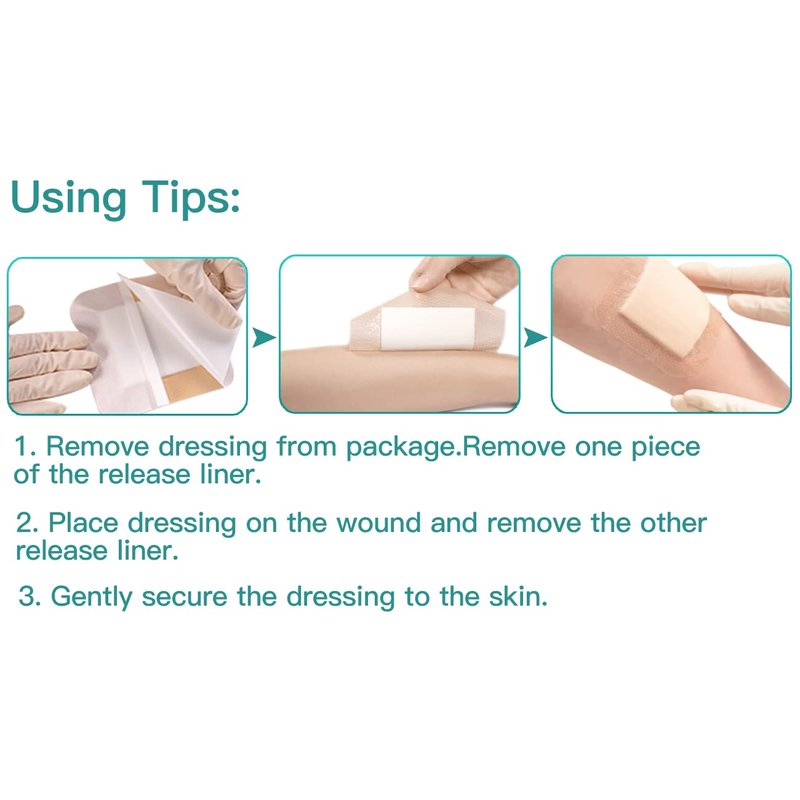 - GENTLE BUT SECURE ADHESION - We adopts an A+ medical-grade hypoallergenic soft silicone as a wound contact layer, it absorbs dead tissue cells, won't stick to the moist wound, while is sticky enough to stick to dry skin, minimize pain and trauma at dressings change