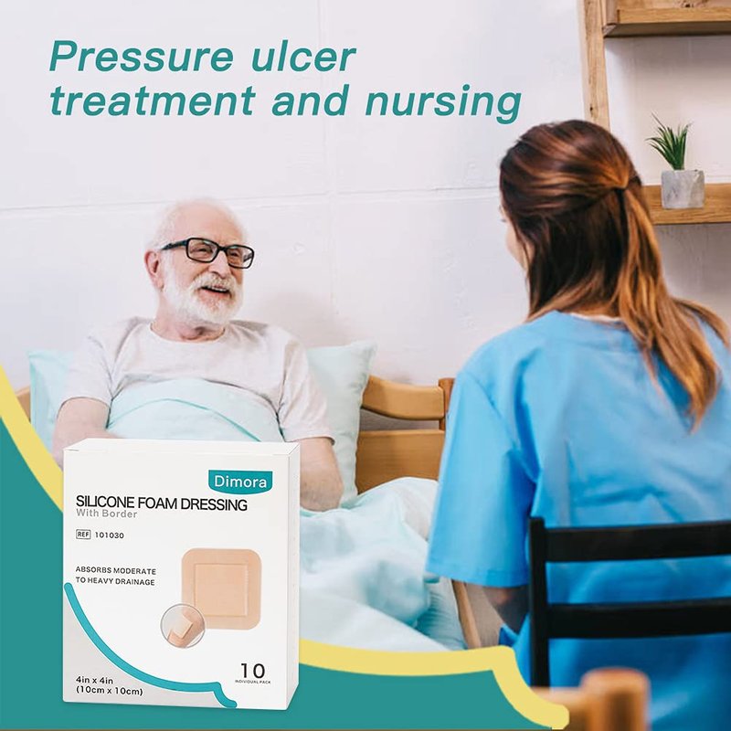 Dimora Silicone Foam Dressing with Border Adhesive 4"x4" Wound Dressing First Aid Bandage for Wound Care 10 Pack FSA/HSA Approved