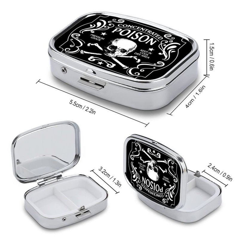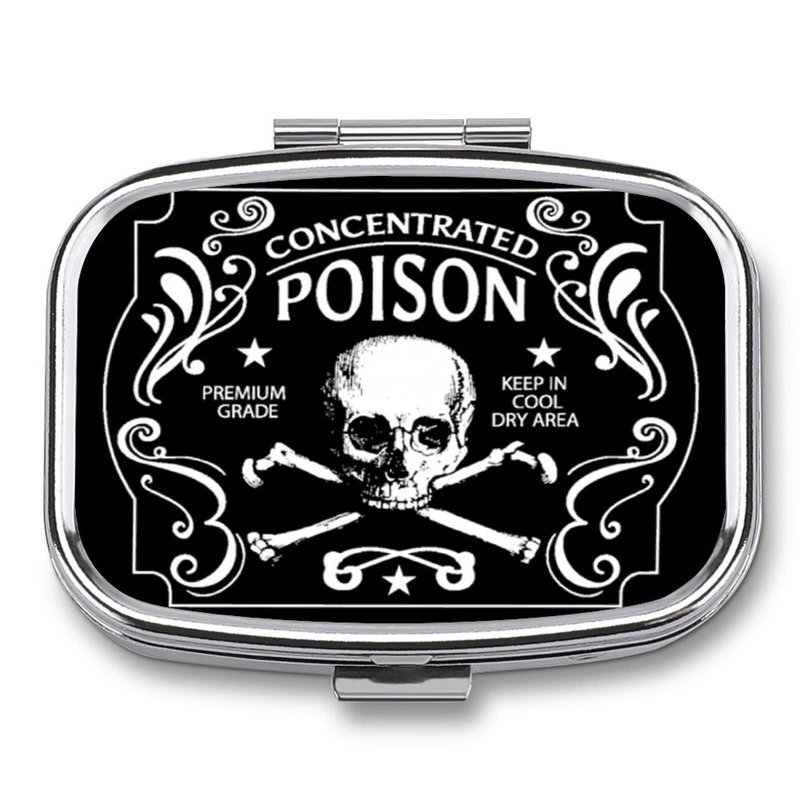 DingRound Metal 2 Compartment Pill Organizer Travel Friendly Portable Compact Pill Box Cute Pill Case to Hold Vitamins/Fish Oil/Supplements/Meds/Tablet for Purse/Pocket (Concentrated Poison)1
