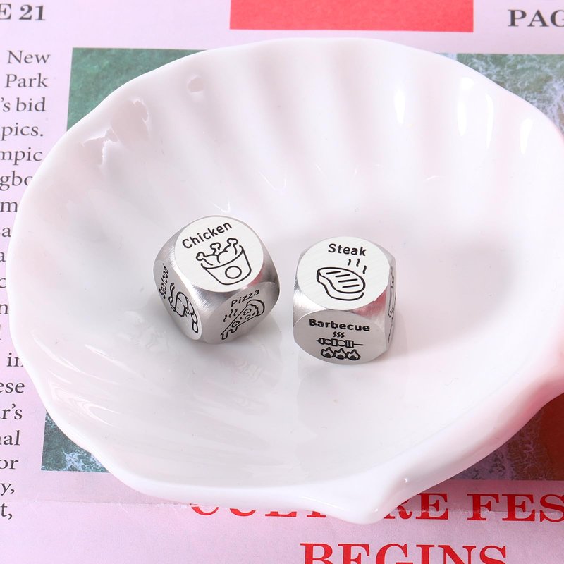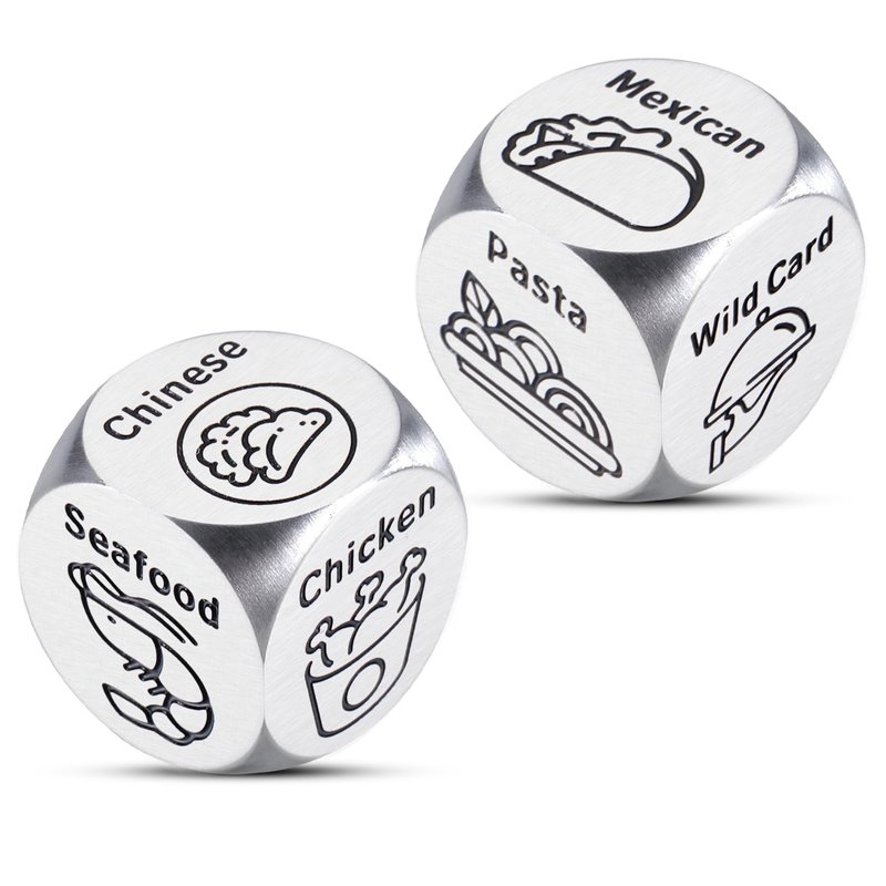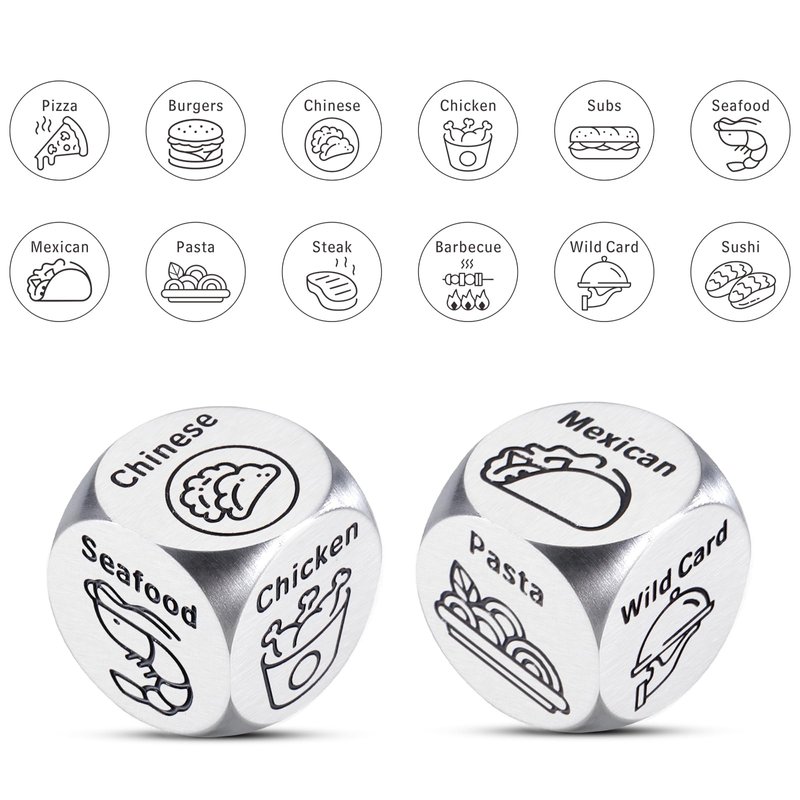 Dinner Food Dice Decider, Valentines Day Gifts for Him, 2PCS Food Decision Dice, Valentines Gift Basket, Wedding Gifts for Couples, Anniversary Iron Gifts, Funny Gag Gifts, Stocking Stuffers for Men