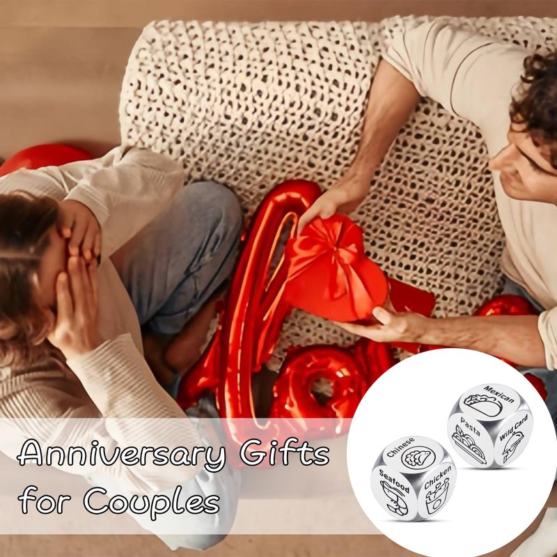 - Anniversary gifts for men women - 2 pieces food decision dice, each engraved with six different food choice which make it a gag funny gift for your awesome boyfriend girlfriend husband wife sweetheart. Anniversary gifts for men, 6 year iron anniversary gift, 6 year anniversary gifts for him, 6 year anniversary gifts for her, anniversary gifts for women, anniversary gift for couple, 50th wedding anniversary gifts, 50th anniversary decorations, cool anniversary gifts for men, anniversary gift.