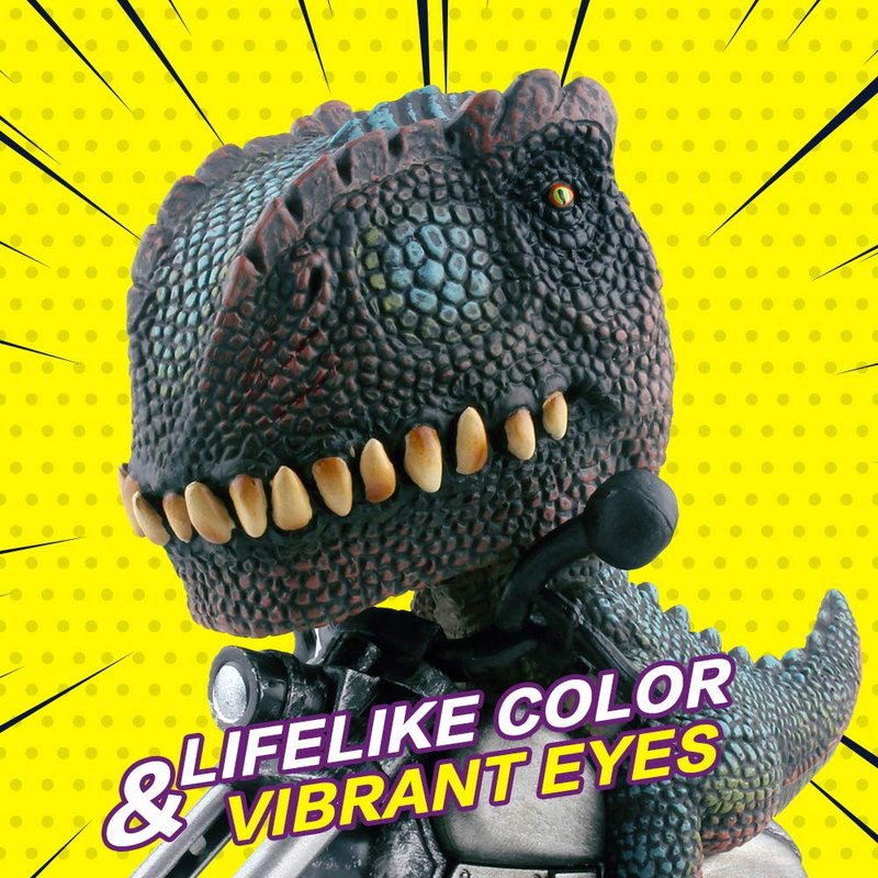 - [2-Pack DINOSAUR MOTORCYCLES] Dinosaur friction-powered toy cars featuring 2 big head dinosaur rider motorcycles. Dinosaurs include T-Rex and Triceratops. The design of realistic dinosaur and vehicle combination makes a cool dinosaur toy for boys.
