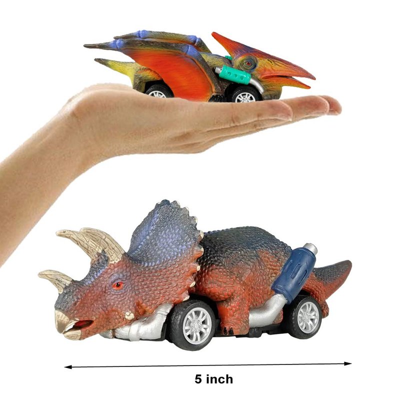 - [PERFECT MINI SIZE] Small Size Dinosaur Pull Back Toy Cars are approximately 5" in length. This size makes the dinos toys for toddlers and boys easy to hold and play with the dinosaur cars. Recommended toys for boys ages 3, 4, and 5.