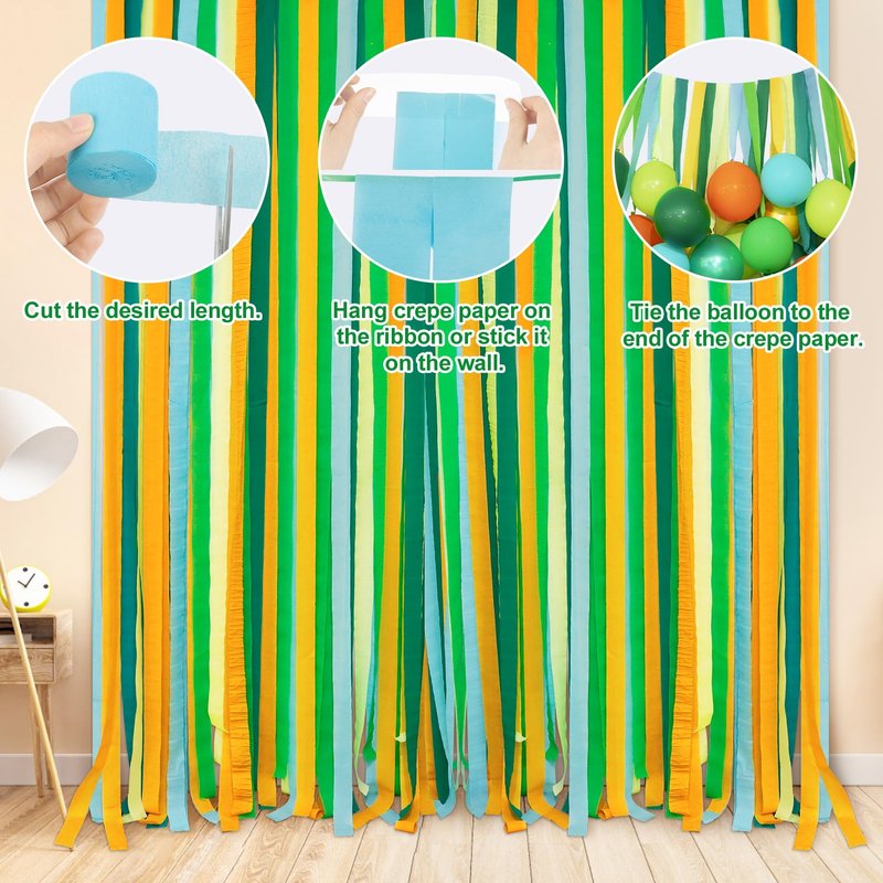 - Easy to Assemble: This dinosaur party decorations boys pack contains balloons, dinosaurs birthday banners and crepe paper streamers and you don't have to spend too much time choosing and matching. This dinosaur themed birthday decorations for boys provides ribbon, balloon arch strip and glue points, so which easy to install. Our dinosaur party supplies looks more vivid and eye-catching, attaching balloons to this will be a fun home craft to assemble with your children.
