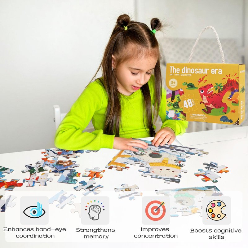 - [Perfect Gift for Kids Ages 4-8] Measuring 19.69 inches by 13.39 inches, this 48 piece puzzle makes a fantastic gift for birthdays, holidays, or family playtime. Whether puzzles for kids ages 4-6, kids ages 6-8, or even puzzles for kids ages 8-10, this Dinosaur Escape puzzle guarantees hours of fun and learning. It’s also an excellent choice for floor puzzles for kids ages 4-8, offering an engaging, high-energy experience for young puzzle lovers.