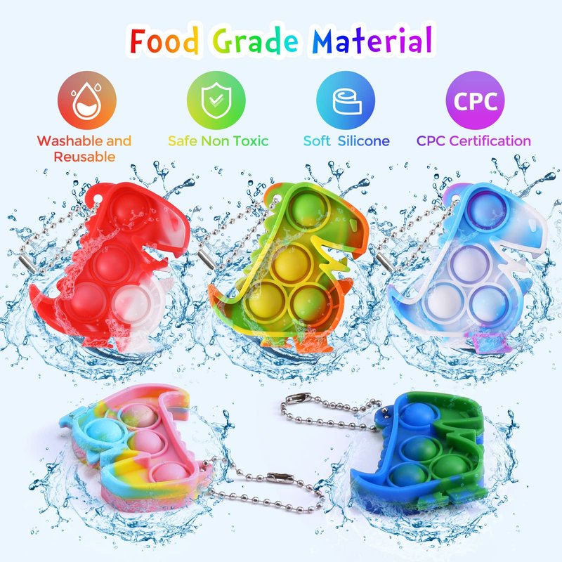 - Dino Party Favors for Kids 3-5 : These dinosaur mini fidget toys and dino party favors are suitable for people with anxiety, when playing the dinosaur keychains for kid dinosaur goodie bags for kids birthday can be used for class prize