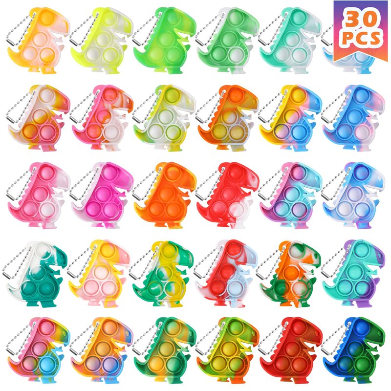 Dinosaur Party Favors Dinosaur Keychains Kids Party Favors Fidget Toys Bulk 30 Pack Mini Pop Fidget Keychain Its, Dino Party Favors for Kids 4-8 Children Mini Supplies It Small Birthday Decorations