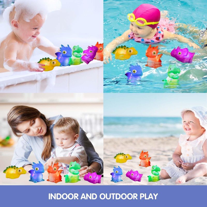 - Ideal kid bath tub toy set for bath time, dinosaur theme party decor, festival present, birthday gift.
