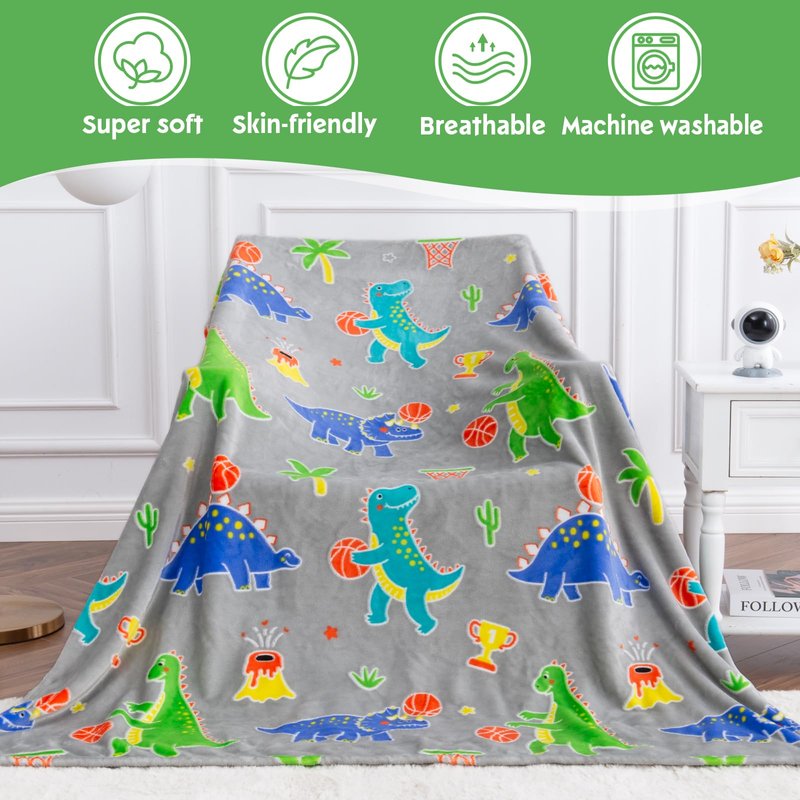 - Multifunctional Blanket: Kids dinosaur blankets and throws is also a perfect lap blanket and bedroom nap blankets, suitable for using on sofa, couch, bed, car journey, outdoor travel camping or home decor. Glow in the dark dinosaur blanket perfect as a dinosaur toys, dinosaur toys for kids 2-4, dinosaur toys for kids 3-5, dinosaur toys for kids 5-7. Halloween blanket perfect as a halloween gifts. Christmas blanket perfect as a christmas gifts. Dinosaur blanket for boys, girls, teens, ideal gifts for kids, toys for age for 2-4, toys for ages 5-7, toys for ages 8-13, gifts for teen girls, gifts for teen boys.