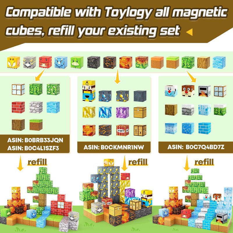 - 【COMPATIBLE WITH Toylogy MAGWORLD】 80pcs Dinosaur magnet world set is designed with forest and volcano themes, infused with Jurassic element, extending construction time and igniting boundless imagination in kids. And also compatible with all Toylogy mine magnet world, allowing kids to refill your existing magnetic blocks and explore mesmerizing landscapes formed by the volcanic, forests, mine caves or frozen, constructing their adventures.