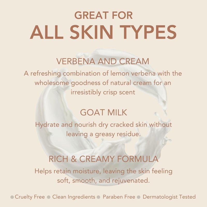 - Formulated with goat milk, rich in vitamins A, C, D, E, and B complex, lipids, and triglycerides, our body lotion preserves your skin's microbiome, promoting moisture retention and suppleness.