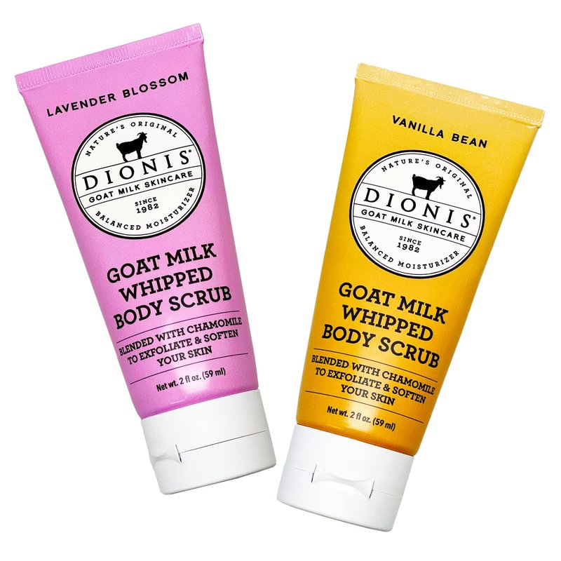 - GENTLE EXFOLIATION: The Dionis Goat Milk Skincare Whipped Body Scrub is gentle, yet hardworking. It removes dry, flaky skin cells to brighten tired or dull-looking skin, leaving behind smooth, healthy glowing skin. It contains natural Goat Milk and Chamomile to replenish and calm skin after exfoliation.