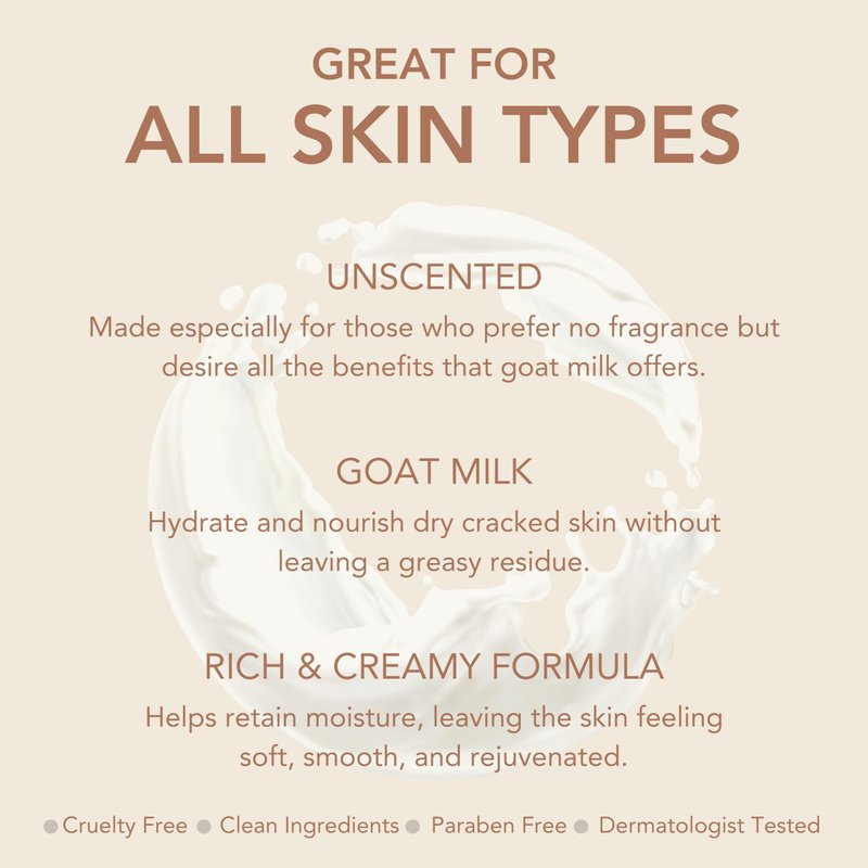 - Unscented Formula - Free of fragrance but rich in moisture! Made for our customers who prefer no fragrance or are sensitive to scents and perfumes but desire all the benefits that Goat Milk has to offer.