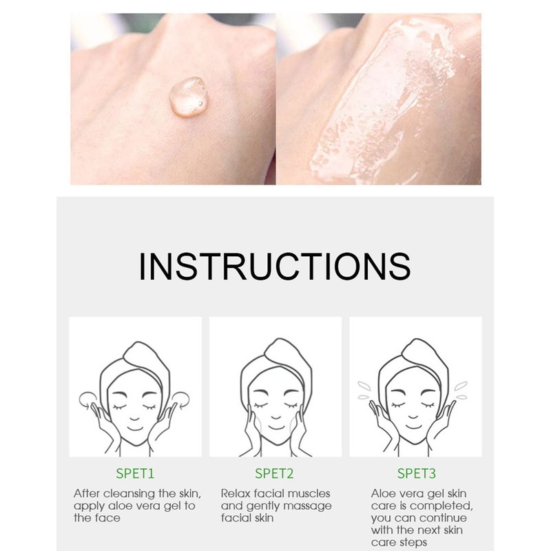 Moisturizing, melting gel for face and body, provides an instant moisturizing effect, saturates the skin with moisture, making it soft, smooth and elastic. The ultra-light texture of the gel is easy to apply and absorbs quickly without leaving a sticky effect on the skin. Restores after sun. Good emergency skin care after sun exposure Soothes and protects the skin, instantly cools, detoxifies the skin, prevents inflammation and allergies, promotes cell metabolism and skin regeneration, relieves allergic symptoms such as redness, swelling, fever and pain, especially after sun. Contains amino acids, organic acids and aloe sin. Rich in vitamins that improve the defenses of the skin, gradually repairing damage and reducing skin problems such as blemishes and acne scars. Removes blackheads and blemishes. The gel is made from superior quality freeze-dried aloe powder, with high purity. Replenishes moisture deficit in skin cells, controls excessive oily skin, prevents acne, relieves dryness, tightness and skin discomfort. Soft and smooth skin without any irritation. How to use: Apply the gel to clean, dry skin. Massage gently until completely absorbed. Frequent use gives the best effect. Use as a makeup base.