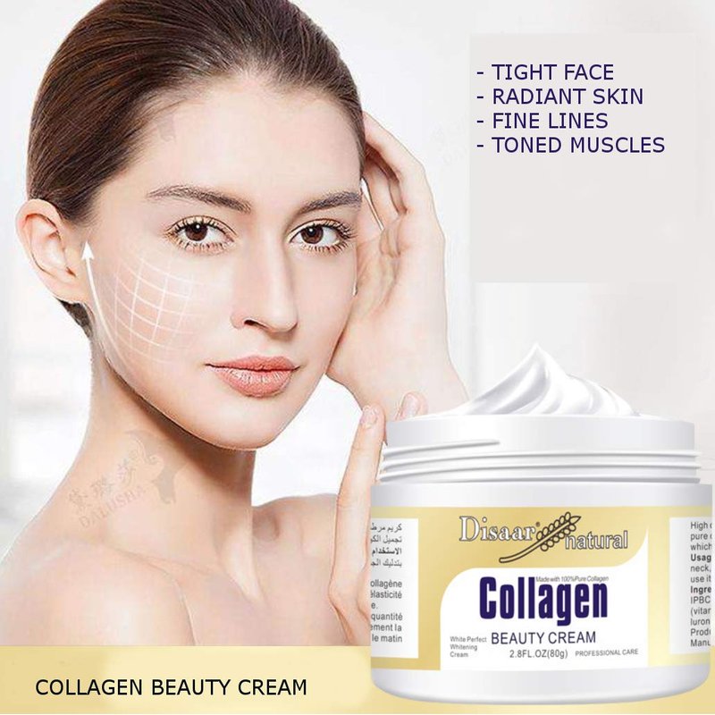 DISAAR BEAUTY Collagen Cream Forehead Neck Lines Smile Wrinkles Facial Spots Dry Skin Weak Muscules Improve Your Face 80g