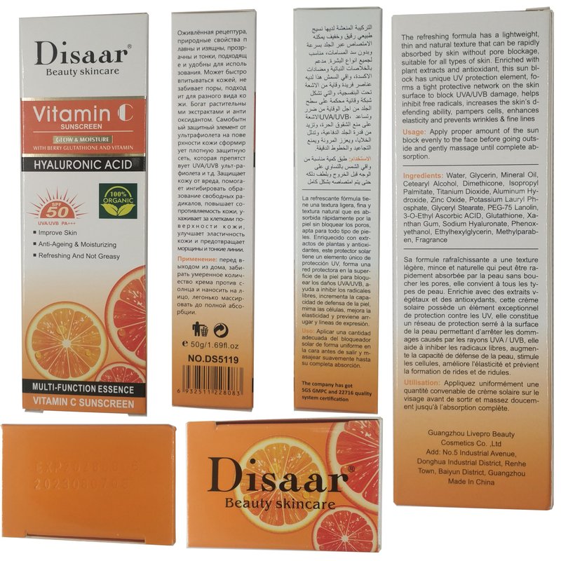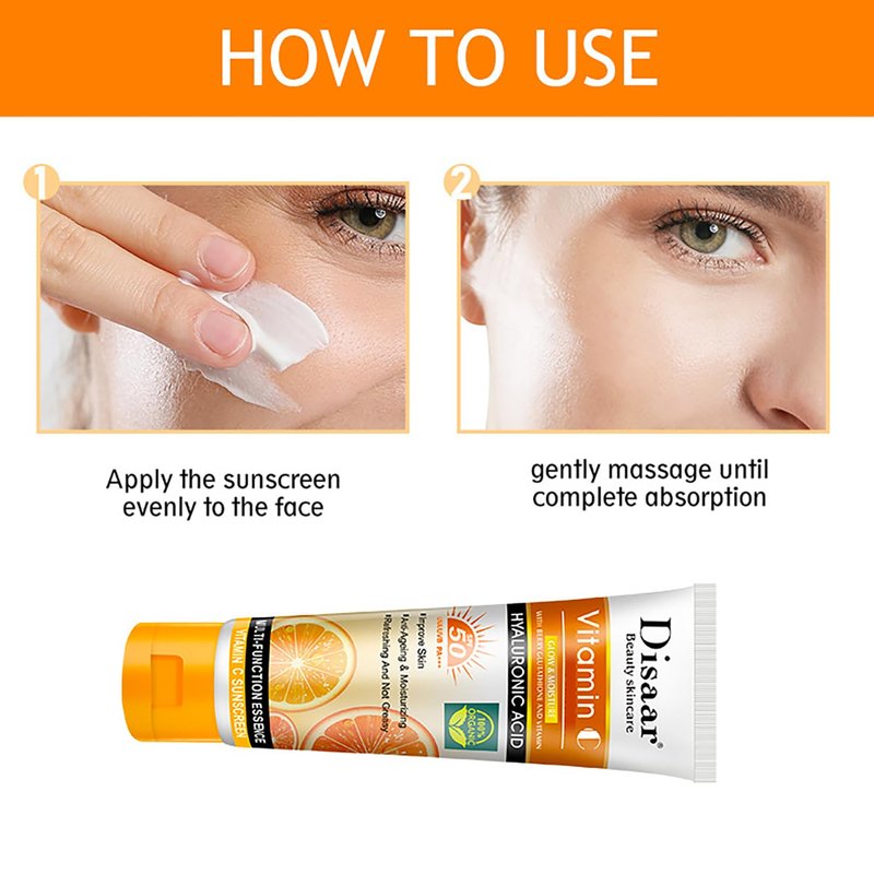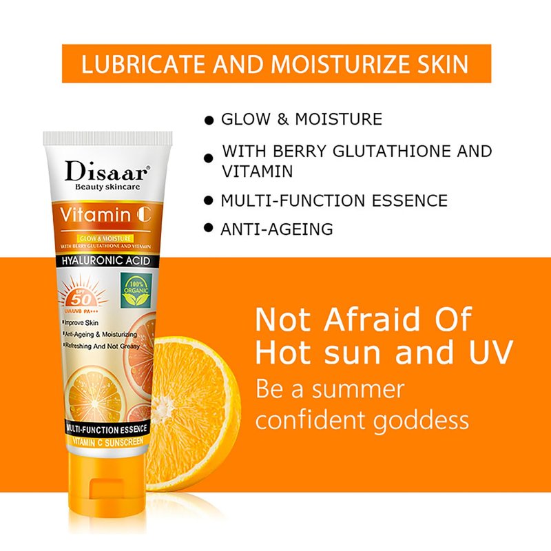 DISAAR BEAUTY Vitamin C Sunscreen Orange Extract Hyaluronic Acid SPF50 UVA/UVB PA+++ Moisturizing Refreshing Skin 50g / 1.69fl.oz