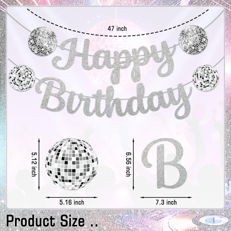 - 【Easy to Use】:Disco birthday banners are pre-assembled, the cards in the set has a pre-cut hole for easy assembly using the transparent hooks provided. You can string them up directly
