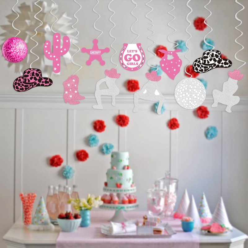 Disco Cowgirl Party Decorations Western Cowgirl Party Decoration Girls Party Decor Supplies Hanging Swirls Party Streamers 24pcs Bachelorette Party Decorations, Assembled and Ready to Use