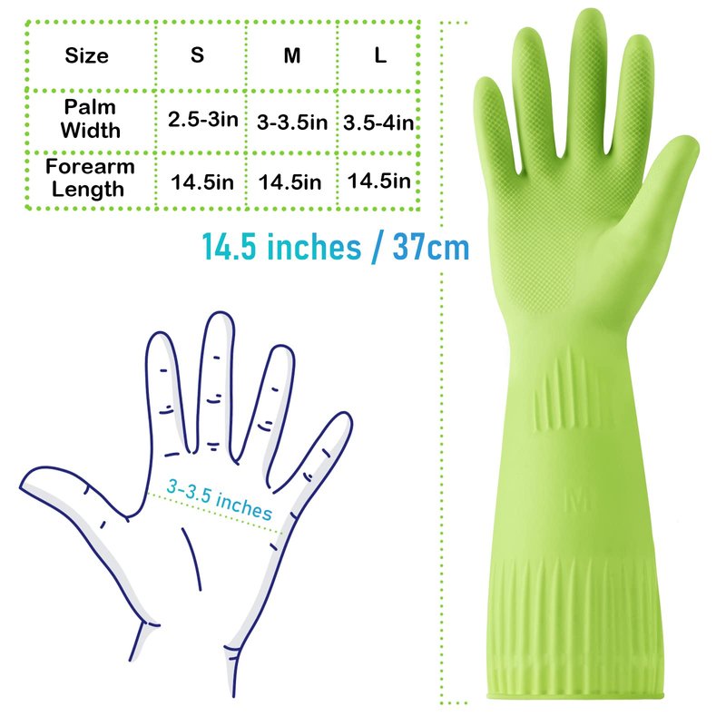 - 【LENGTHENED GLOVES】Long sleeve rubber gloves are 14.5 inches long, Size S palm width 2.5-3in, long sleeve hand protection is comfortable, waterproof and stain resistant, acid and alkali resistant to prevent wrist and forearm from contacting moisture. Better protection of your hands.
