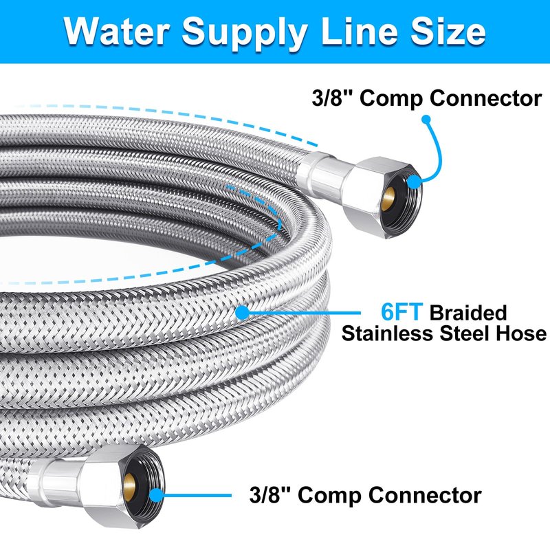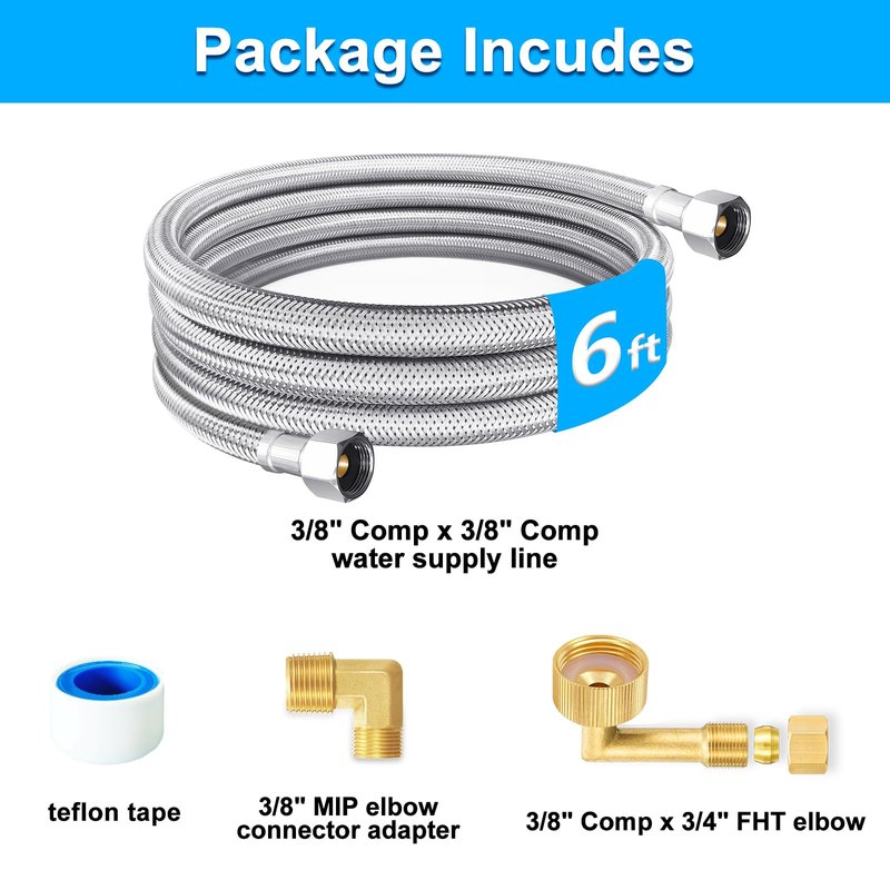 Dishwasher Installation Kit - 6 FT Premium Stainless Steel Braided Dishwasher Hose kit,Food Grade PEX Inner Tube Dishwasher Water Supply Line with 3/8"x3/8"MIP Elbow,3/8"x 3/4" FHT Elbow