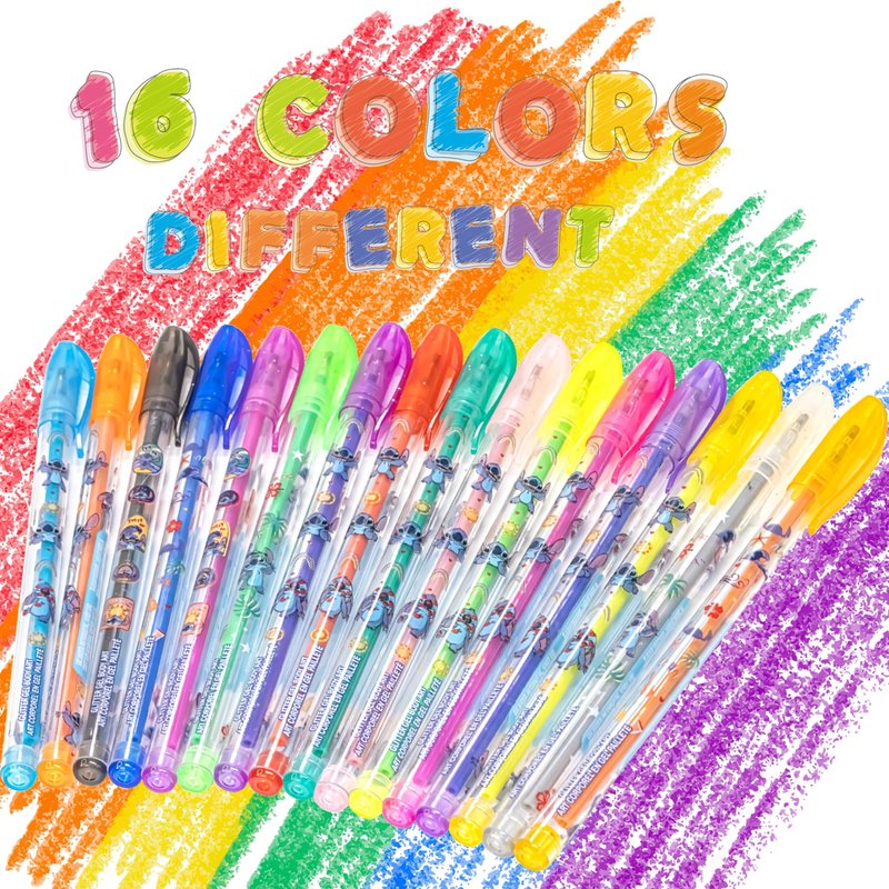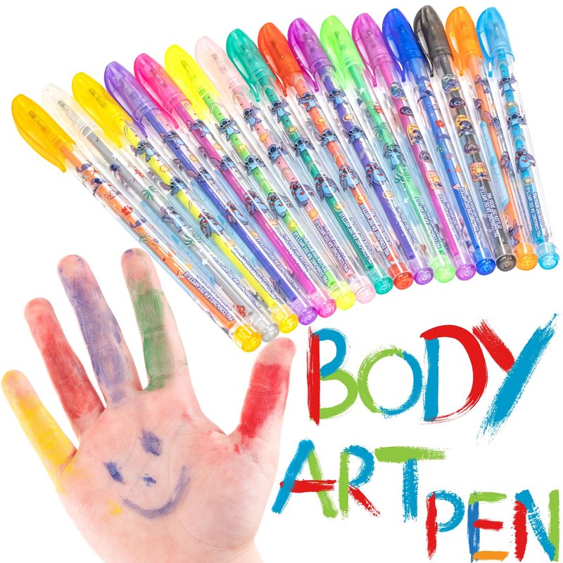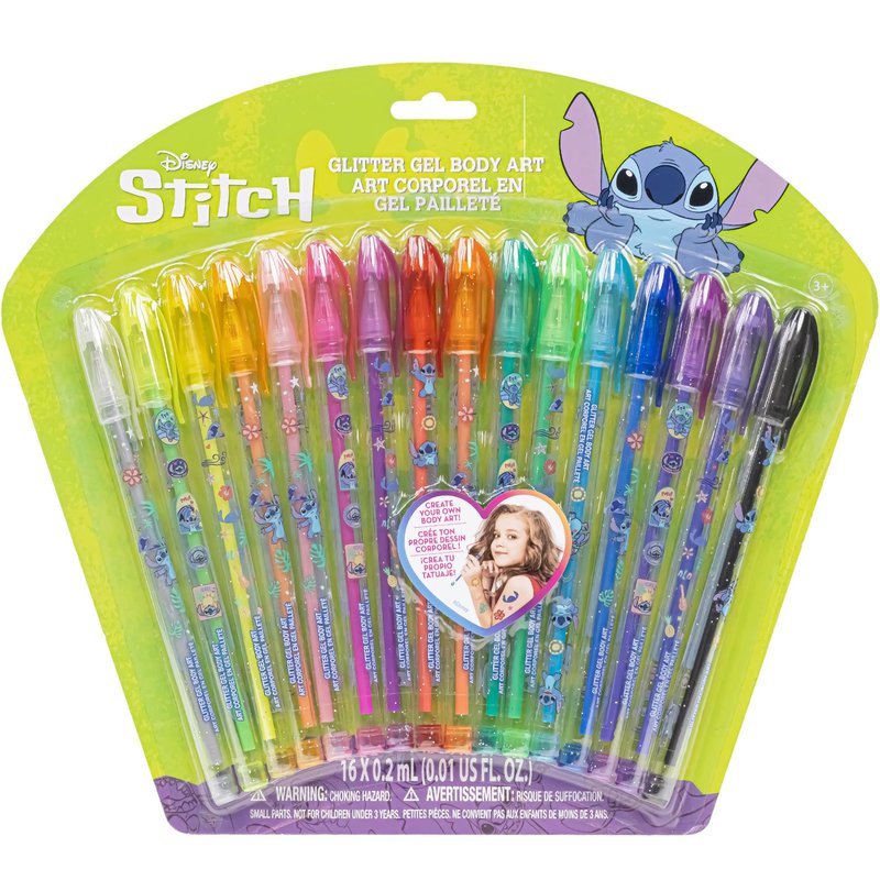 Disney Stitch 16 Piece Glitter Pen Body Art Set, Glittery and Bright Colors, Ages 3+ by Townley Girl