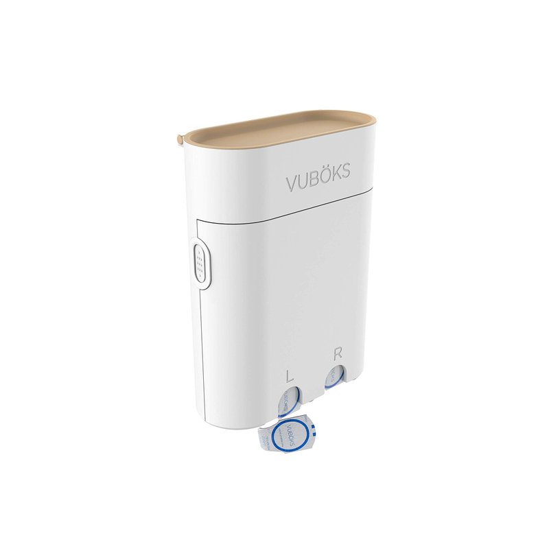 UNIVERSAL FOR ALL DAILY LENS BRANDS Reduces the distribution of lenses to a single handling . Easy distribution and sectioning of lens blister packs . Storage of 30 days of lenses in each compartment . Compartment for storing a pair of glasses once the lenses have been worn. . Differentiation right eye left eye compartment . Fits into any bathroom decor . Can be fixed with double-sided adhesive tape (supplied) . Notch for glasses compartment opening . Front cover opening by pressure.