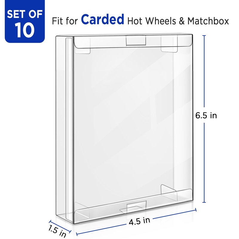 Display Case Compatible with Carded Model Cars, 1:64 Model Car Protector Display Case for Carded Diecast Cars, No Movement Design-(Ultimate 10 Packs)