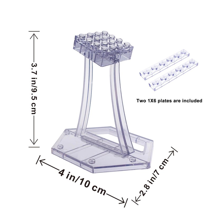 - 【Well Designed】This is a good looking brick display stand, which is used to support your LEGO sets and better to display them at a 15 degree angle. 4 minifigures can be put on the 4 nubs at the base plate.