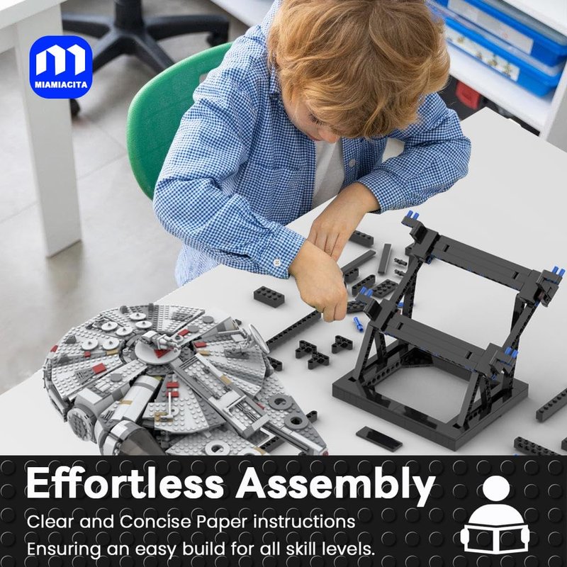 MIAMIACITA Display Stand for Lego Millennium Falcon 75257 75389, Upgraded Bracket for Lego 75257 75389, Strong Construction Stand Building Set with Clearer Instructions for Fans, Adults, Kids
