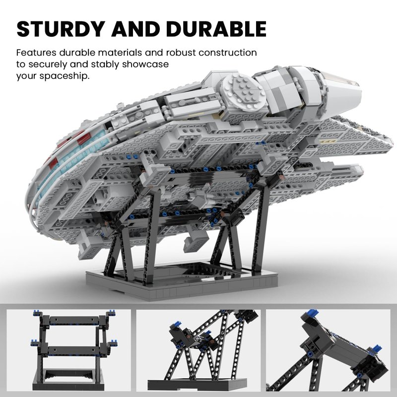 - Sturdy Stand for Lego Millennium Falcon: Designed specifically for the building block model 75257 and 75389 Spaceship, our display stand features robust construction to securely and stably showcase your creation.