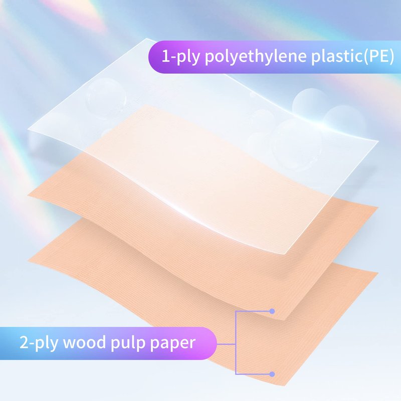 - ➤ 3 Ply Waterproof Dental Bibs: The disposable paper bib is made of 2-ply wood pulp paper and 1-ply polyethylene plastic (PE). Very sturdy, leakproof.