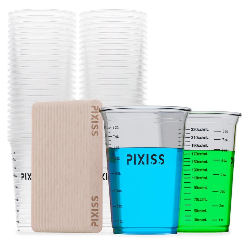 - Unleash Your Creativity - Our Pixiss Versatile Measuring Cups are not just for resin mixing, they also make fantastic paint mixing cups, and versatile plastic measuring cups for liquids, making them the perfect tool for any project you have in mind.