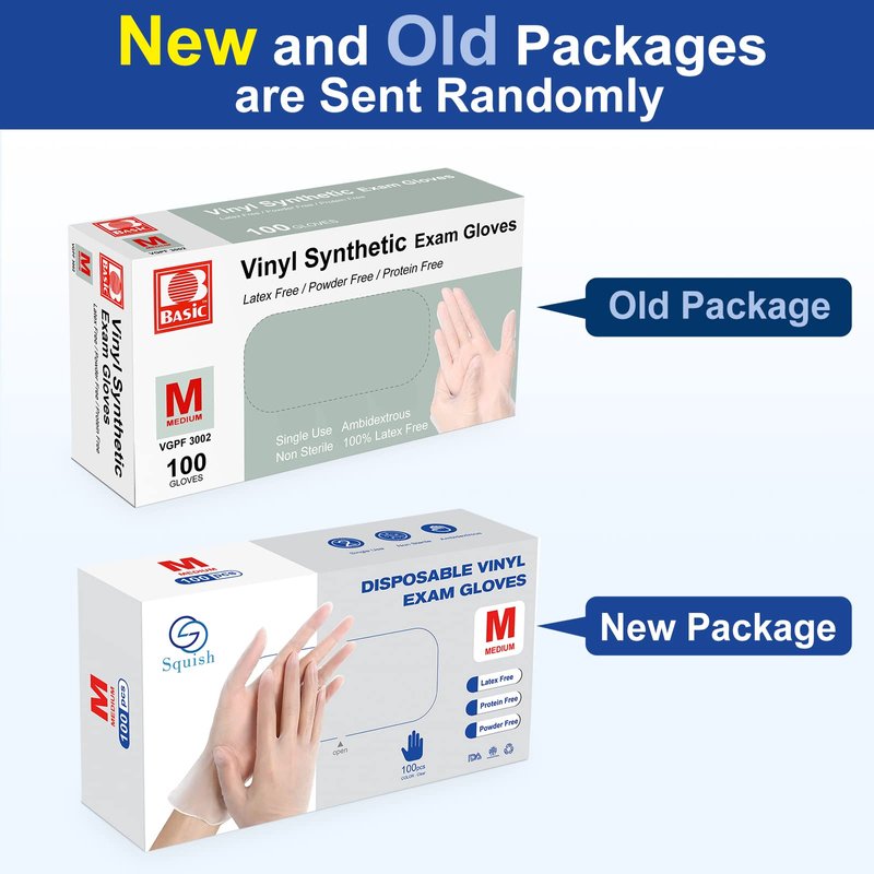 Disposable Gloves, Squish Clear Vinyl Gloves Latex Free Powder-Free Glove Health Gloves for Kitchen Cooking Food Handling, 100PCS/Box, Medium
