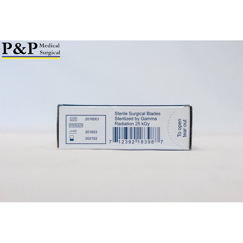 Disposable Surgical Scalpel Blades Sterile High Grade Carbon Steel 2.1% 10xx Individually Foil Wrapped by P&P MEDICAL SURGICAL Size 21 Box of 100