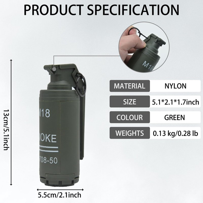 - 【Tactical Equipment】- This is a simulates toy-grenade, for rival rounds, CS battle game. This prop toy is applicable to all kinds of parties, games, or pranks between friends, and can also be given to friends as gifts.