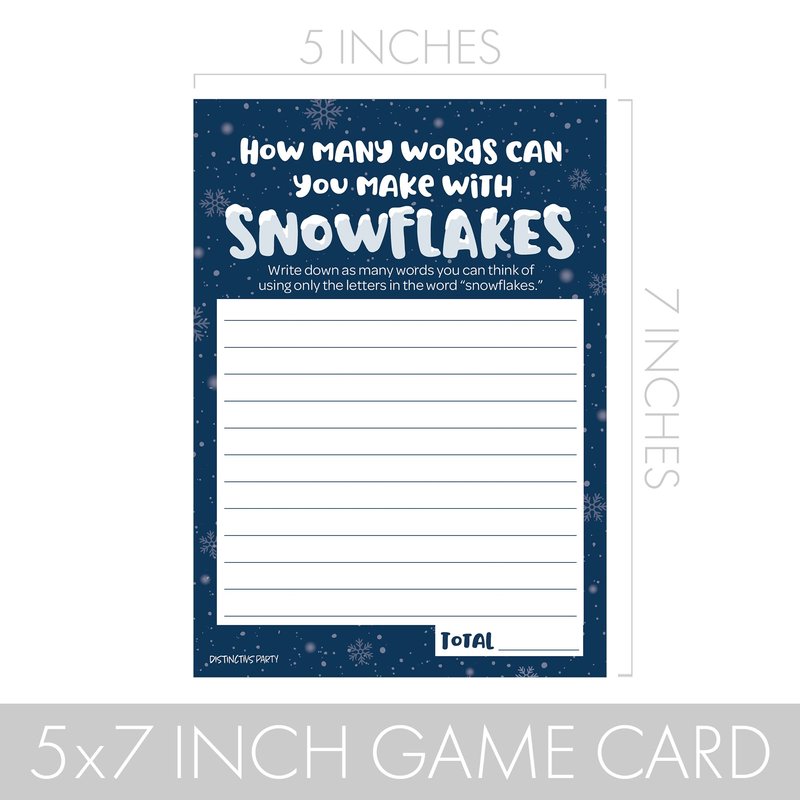 - There are over 398 words you can make out of the word Snowflakes. See how many your guests can come up with in this snow day party anagram game. On the back side, decode the phrases that are describing a Winter character or item and fill in the blank. Play a race-to win-game to see who can guess them the fastest. Prizes not included. These party activities are a great addition to your group party games or Winter Wonderland Birthday Party.