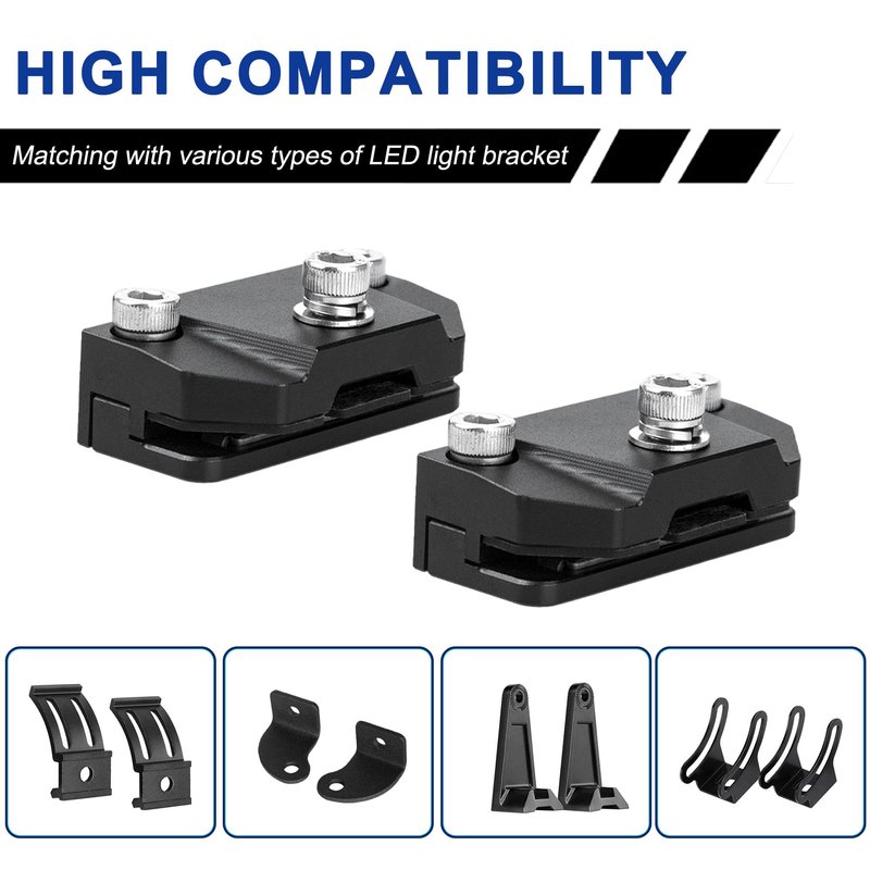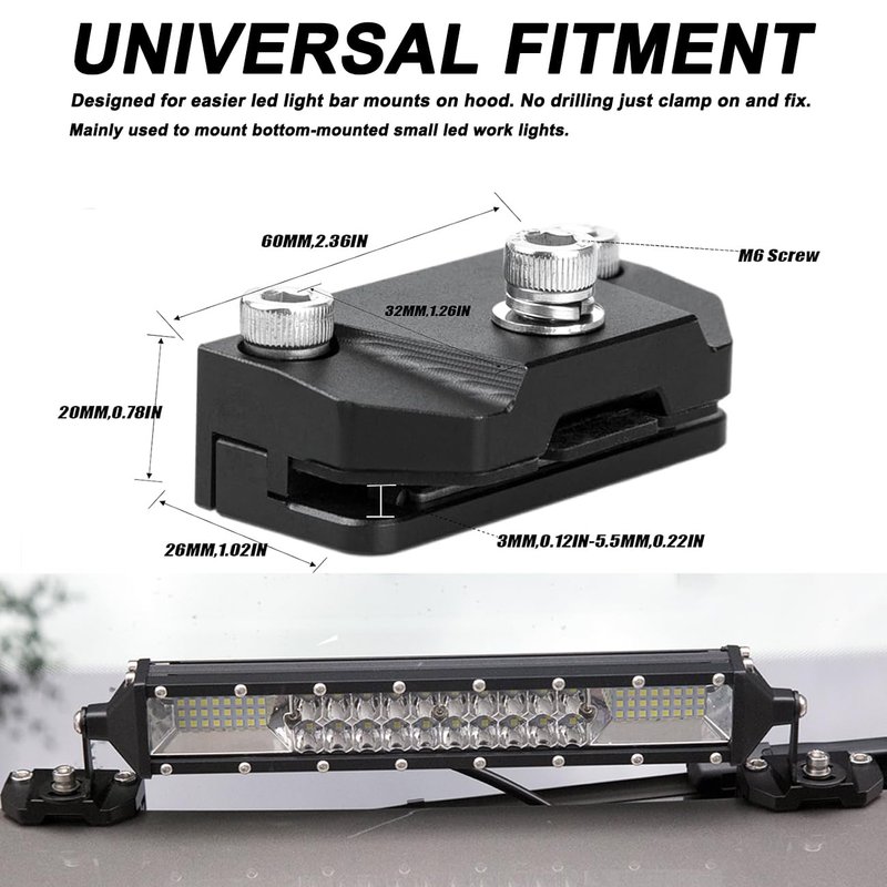 - 1. Effortless LED Mounting: Simplify LED bar mounting on your hood without the hassle of drilling. Just clamp and secure! These brackets cater specifically to bottom-mounted small LED work lights, perfect for illuminating your path.