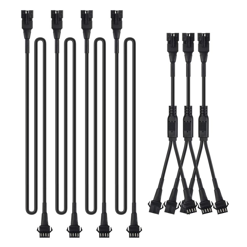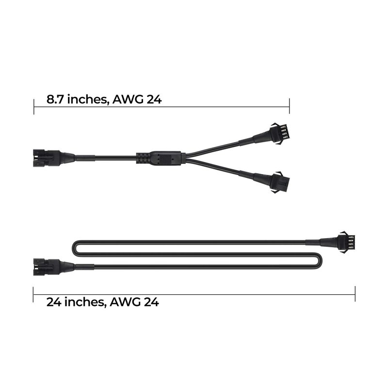 DITRIO 4pcs 2-Feet Extension Cords and 3pcs 2-Way Splitters for Underglow RGB LED Strip Light Kits on Motorcycles Trikes Golf Carts ATVs EXT-2FT
