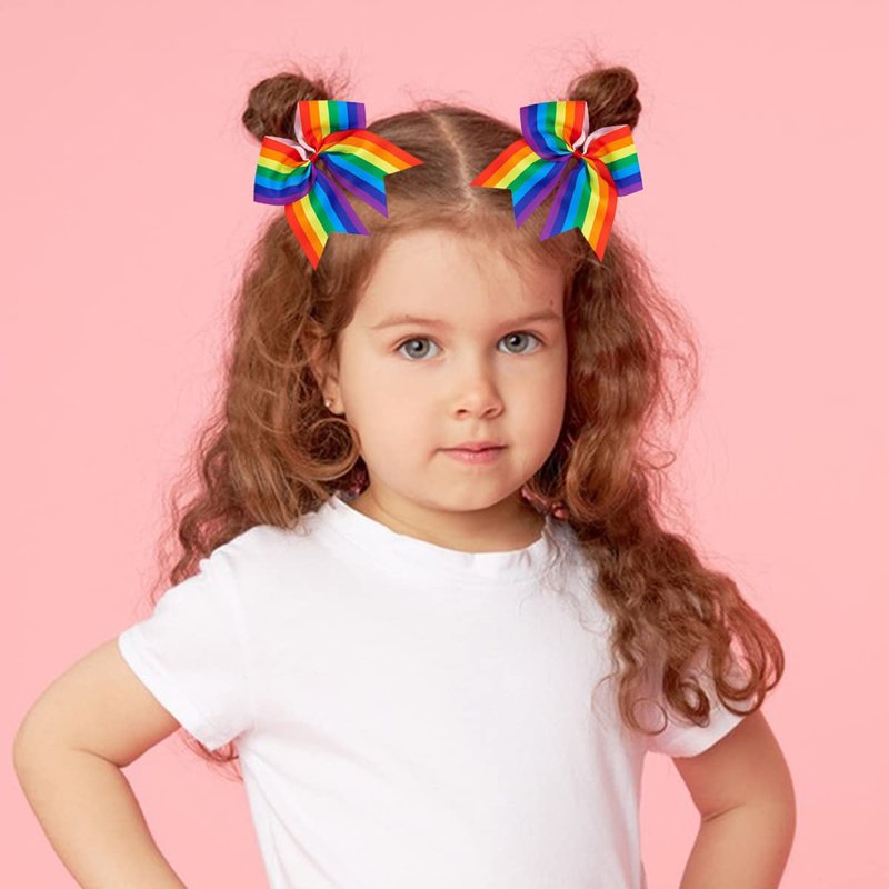 Rainbow cheer bows with an elastic ponytail holder and cute and fashionable design make them great hair accessories for girls and women.