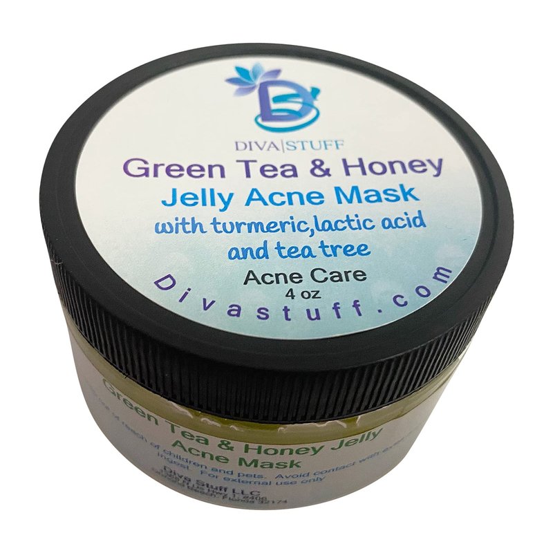 Diva Stuff Green Tea and Honey Jelly Acne Mask, With Turmeric, Lactic Acid and Tea Tree, 4 oz