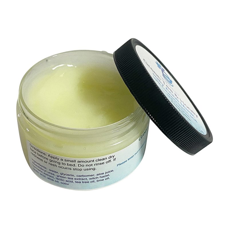Soothing, healing, pore minimizing and acne busting! New Green Tea and Honey Jelly Acne Mask has a cooling base of aloe juice and is infused with green tea, honey, turmeric, lactic acid, tea tree and more. Witch hazel tightens and tones up large pores. Honey destroys acne and keep skin smooth, calm and hydrated. Lactic acid removes dead skin cells and excess oil allowing acne to come to the surface more quickly. Green tea is loaded with antioxidants and helps reduce redness and swelling. Tea tree used for centuries to help heal all kinds of skin conditions. Simply apply to clean dry skin and allow to sit for 20-30 minutes then rinse clean and follow with a light oil free moisturizer. May use this as a spot application as well and can be used as often as desired.