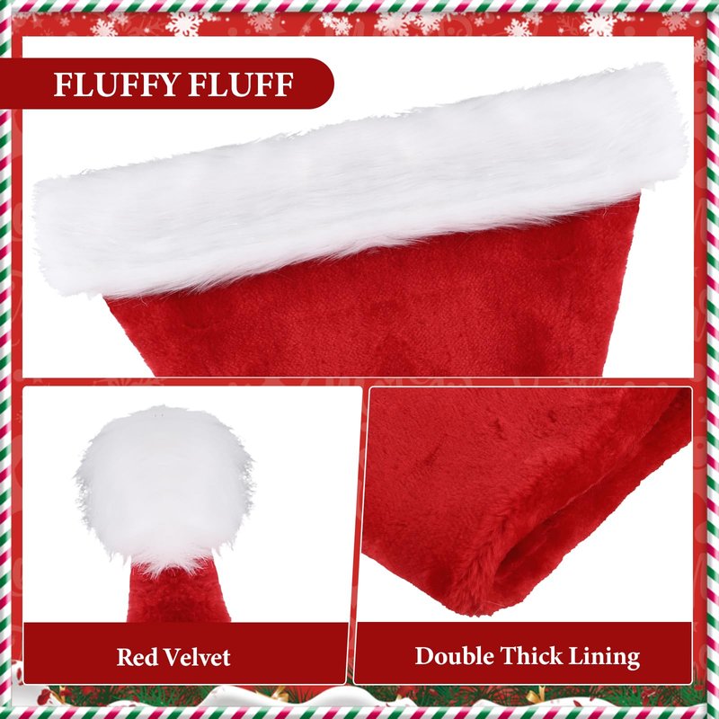 DIVINA VITAE Christmas Hats, Santa Hats Adult Classic Xmas Holiday Hat Unisex Comfort Velvet Santa Claus Hat Thicken Bulk Santa Hat for Christmas New Year Festive Party Supplies