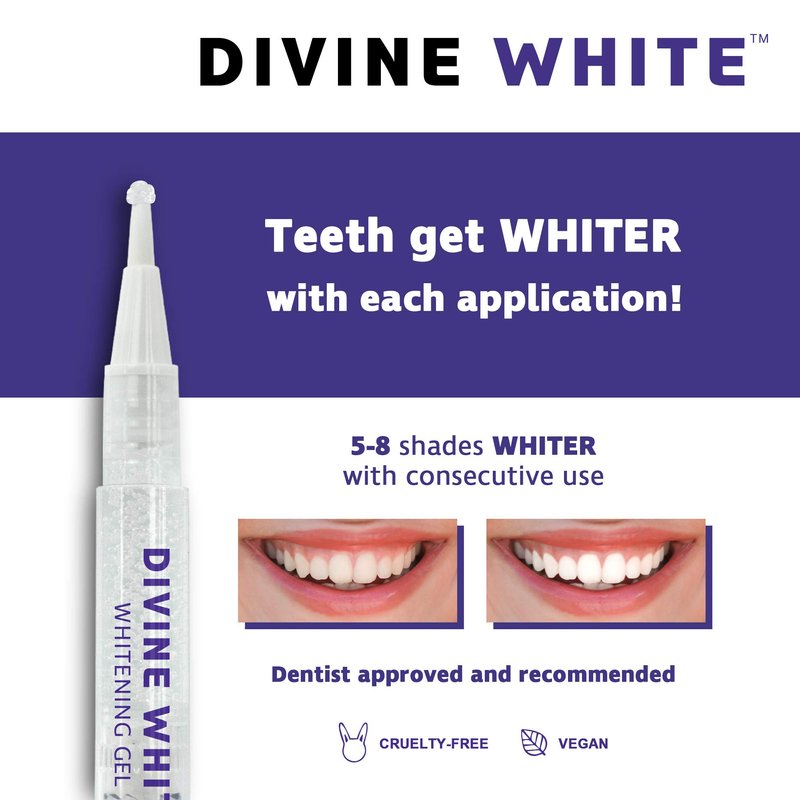 Divine White Teeth Whitening Pen features an innovative and convenient solution that visibly whitens your teeth anytime, anywhere. This pen is strategically manufactured to effectively remove years of stains and pigmented residue from your favourite food and drink. Designed for ease of use, simply twist the pen and quickly brush the tip to your teeth, making it ideal for touch-ups and on-the-go whitening. These whitening tools feature a compact and convenient size, allowing you to easily store one in your pocket or handbag. Consistent application will help you achieve 5-8 shades of whiter teeth. The pen box comes with 36% carbamide peroxide gel pens. With a handy design, these pens are a great gift idea for your friends and family this holiday season.