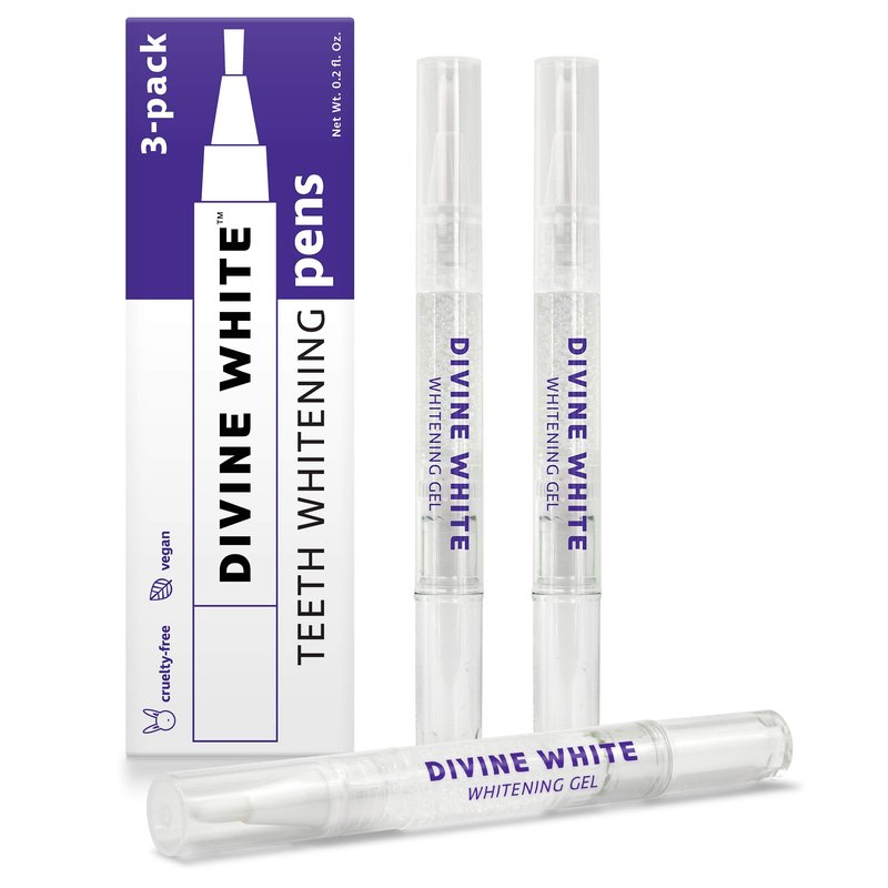 Divine White Snow Teeth Whitening Gel Pen with Brush Tip Applicator Includes 36% Carbamide Peroxide | Compact Design, Travel Friendly, Beautiful White Smile, Oral Care Teeth Whitening Pen, Pack of 3