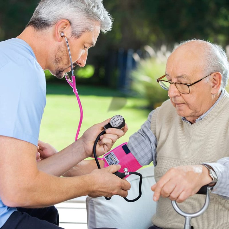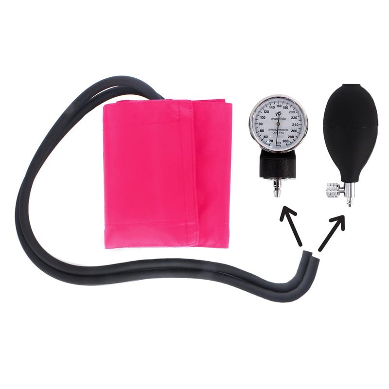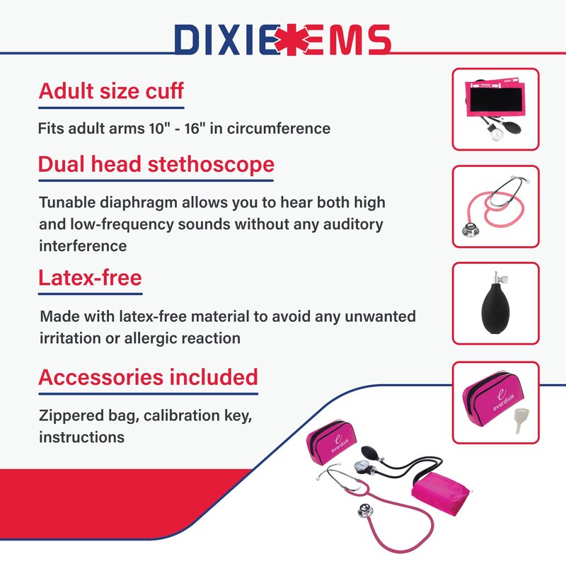 Dixie EMS Aneroid Sphygmomanometer and Dual Head Stethoscope Set with Adult Size Blood Pressure Cuff, Calibration Key and Carrying Case – Pink