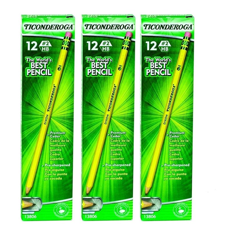 Dixon Ticonderoga Wood-Cased 2 HB Pencils, Pre-Sharpened, Box of 12, (Pack of 3)
