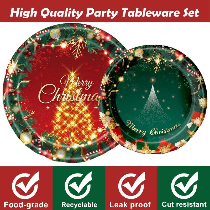 - Premium Materials: Our Christmas Party Supplies dinnerware set made of thickened quality paper and plastic, no smell, safe and durable, will not easily fold, teared or broken when carrying food. Prefect for desserts, party food.